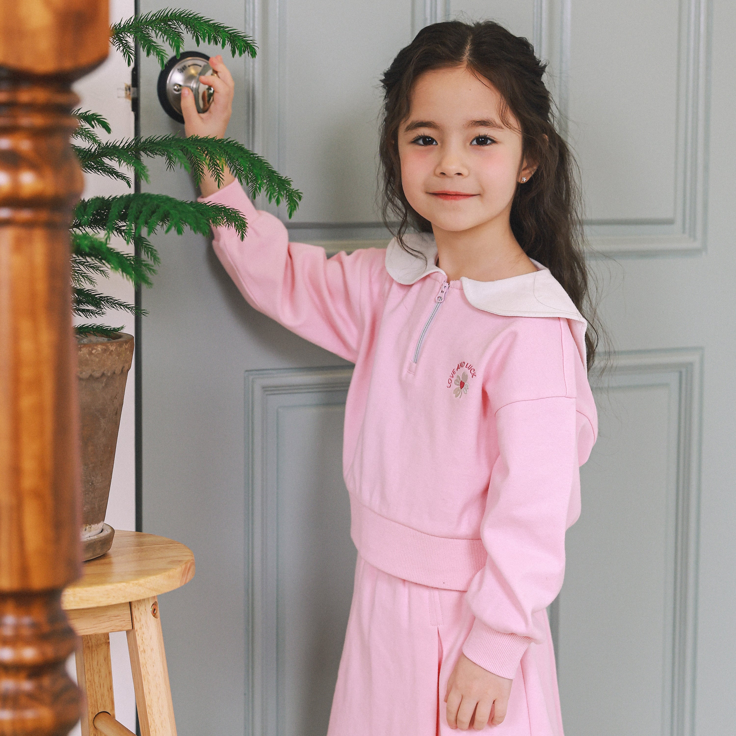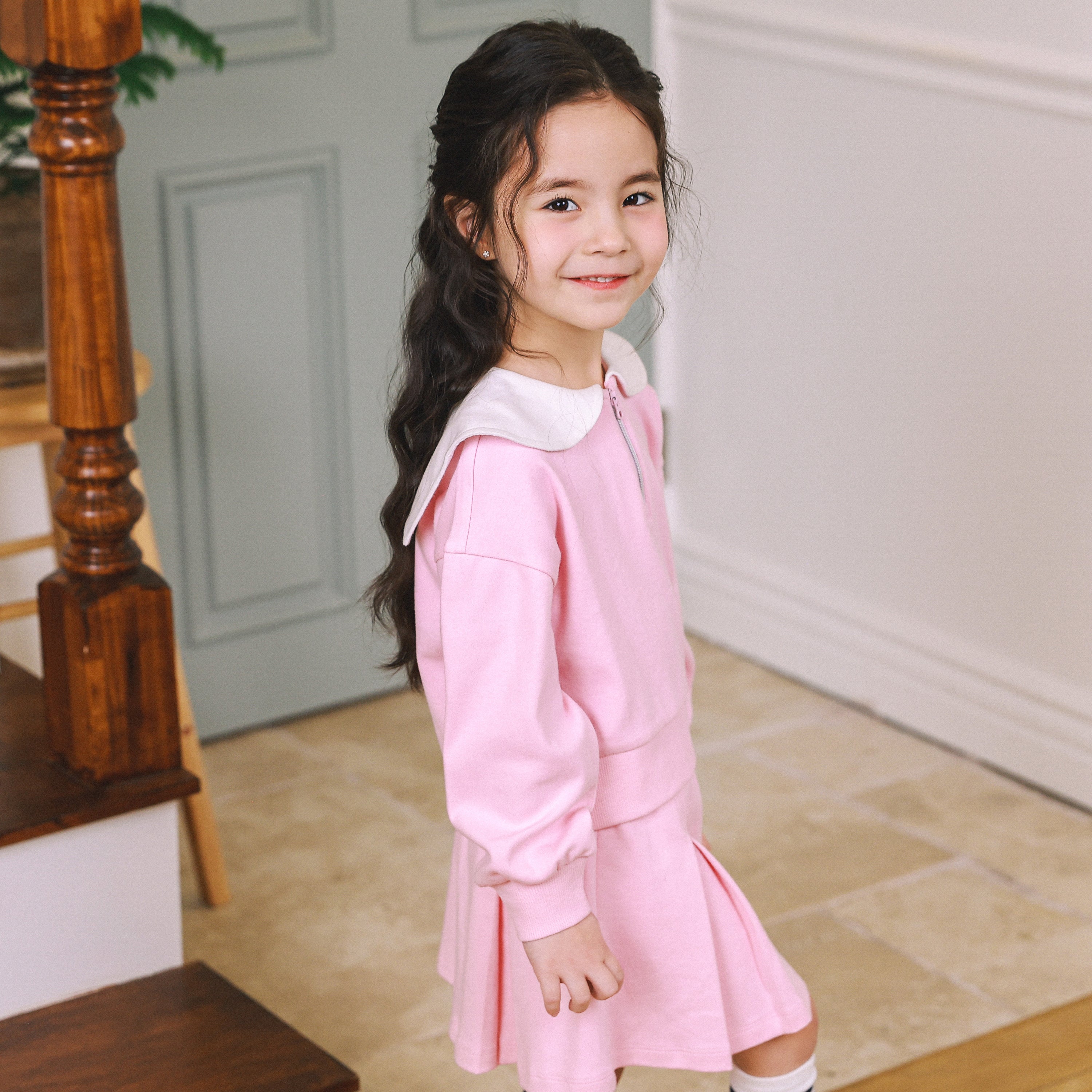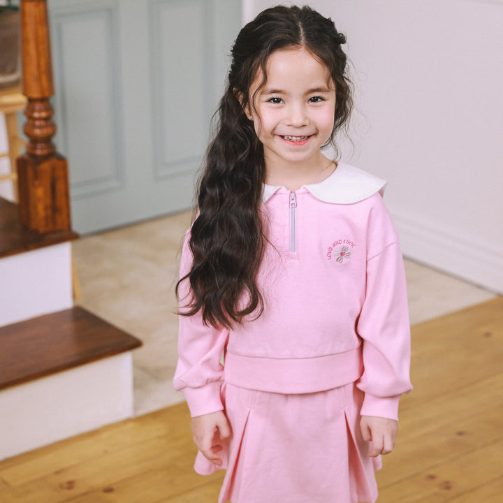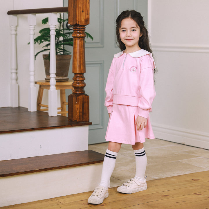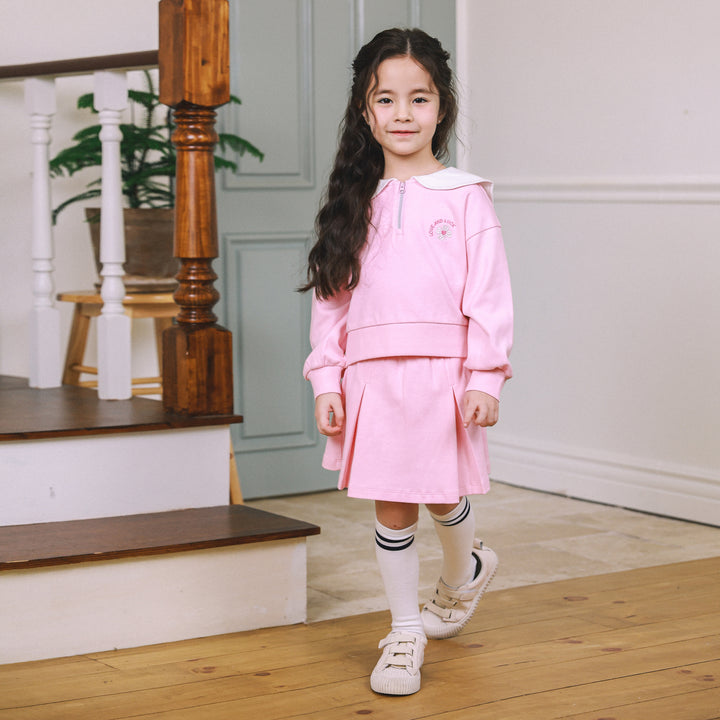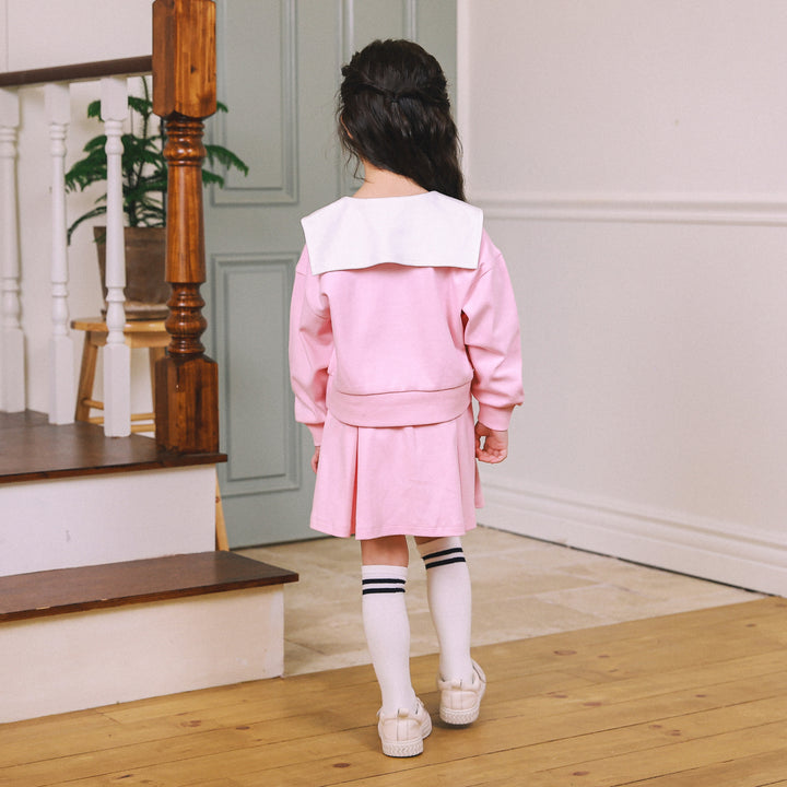 Love & Luck Round Collar Top & Pleated Skirt Set